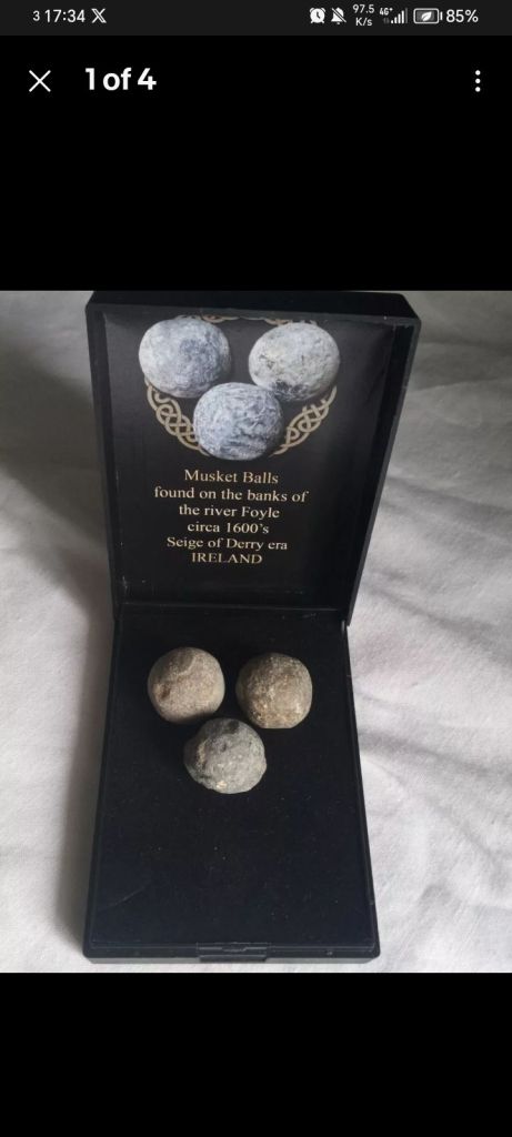I aim to bring some local knowledge to each event so my visitors, if they wish to do so, can go away and explore the local area. For example, there are 400 million year old rocks on the North Coast, the sand stone in Red Bay was laid down 300 – 440 million years ago. The Antrim Glens were carved by glaciers, one of which picked up a boulder (Cloughmore Stone) from Scotland and carried it as a glacial erratic and left it near Rostrevor. And my latest acquisition, courtesy of a friendly metal detectorist in L’Derry, are genuine musket balls from the Siege of Derry in the 1600s.